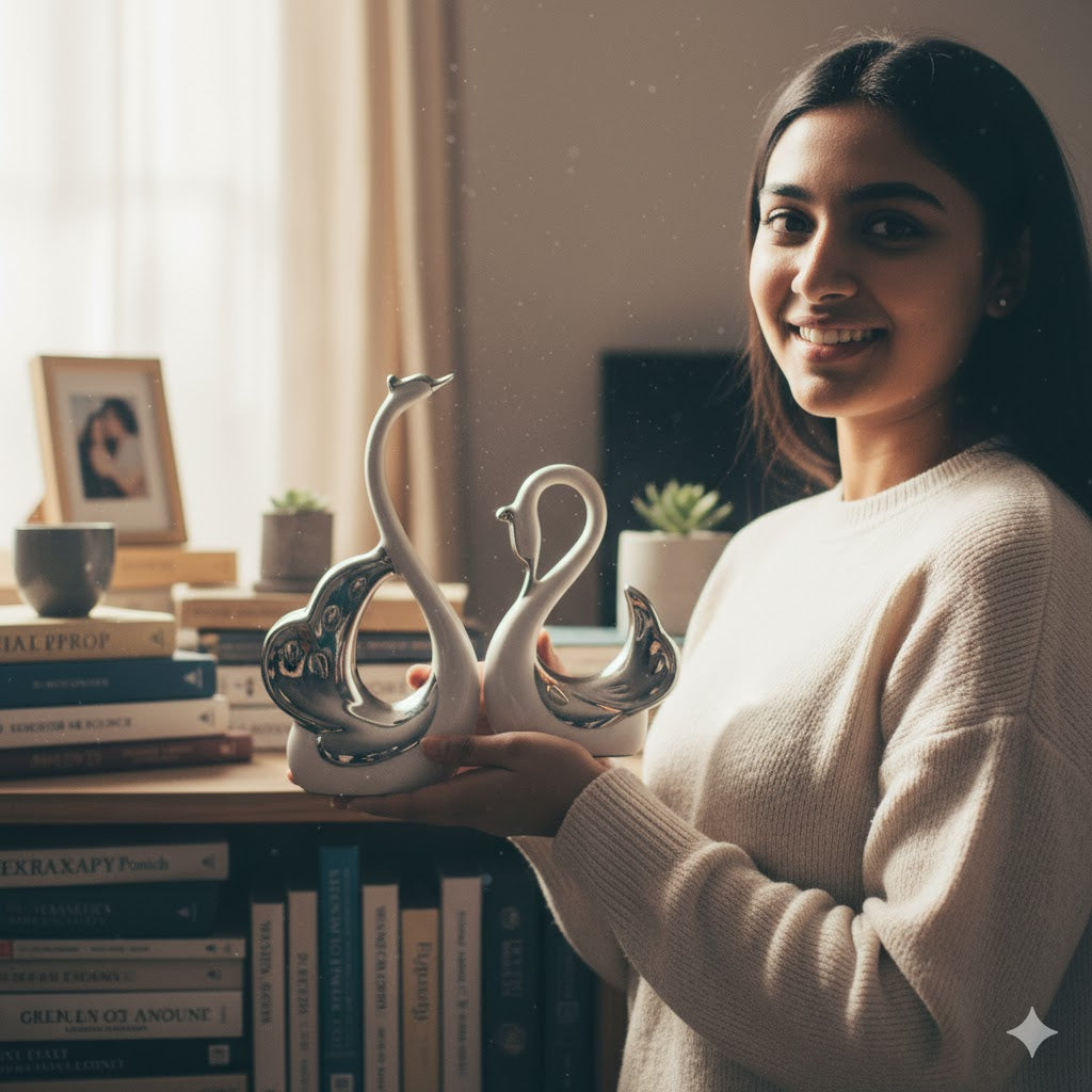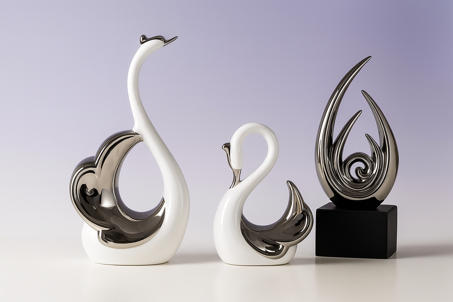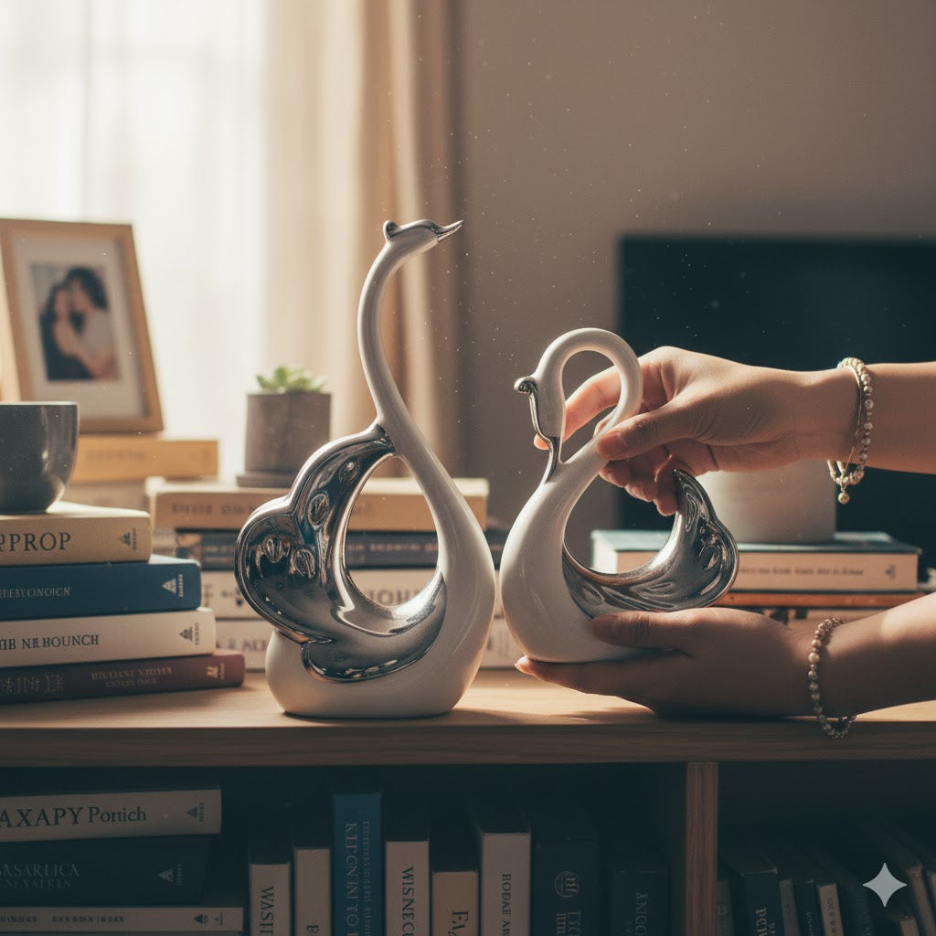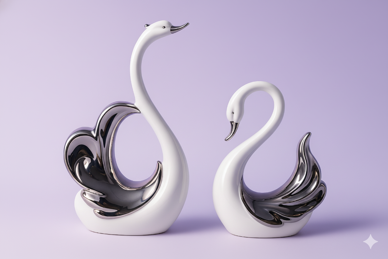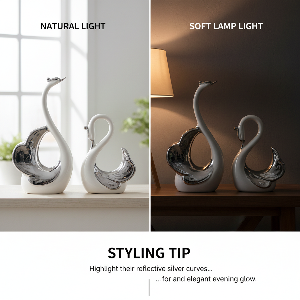 These swans are stunning! The glossy white and chrome combo gives off such a clean, luxurious vibe. They look perfect on my console table next to a mirror